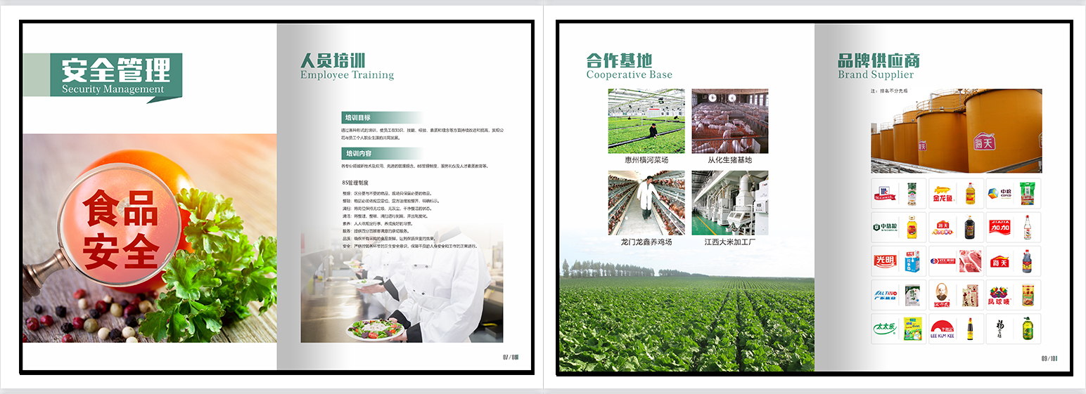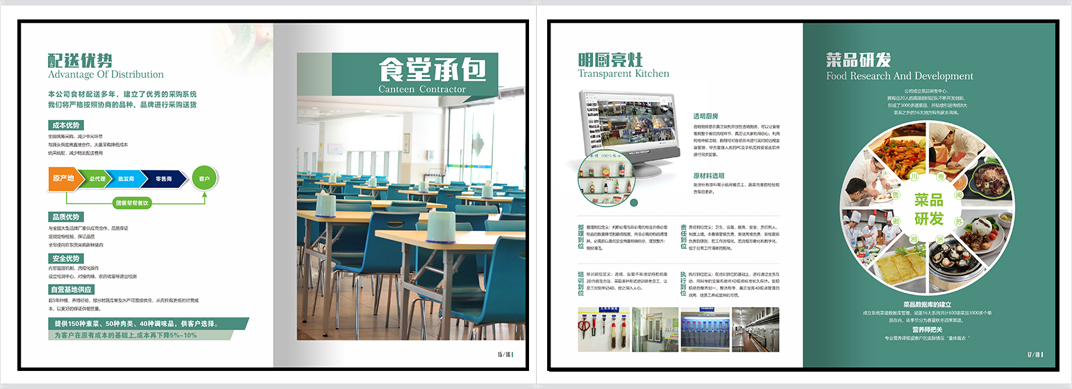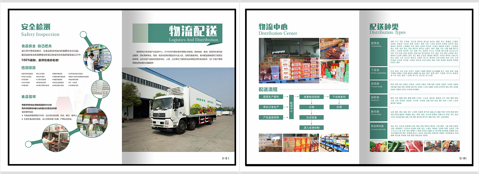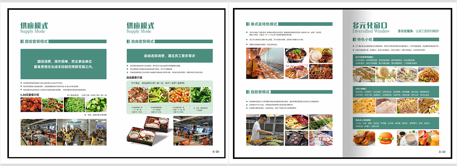 团餐画册,团膳画册,餐饮画册,绿色册子,食品安全,供应商管理,食材配送,食材配送,​​​食堂承包,供餐模式,标准套餐,自选供餐,量贩称重供餐,特色窗口,标准餐谱,餐厨升级,增值服务,应急管理。