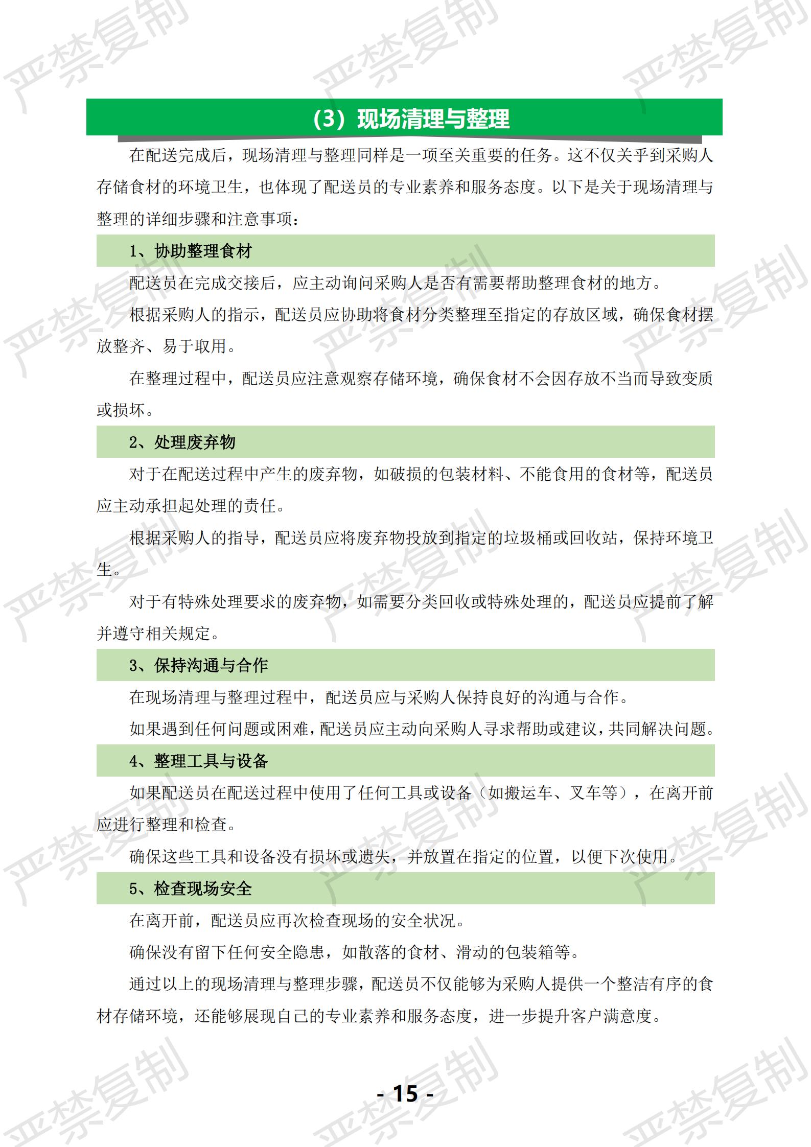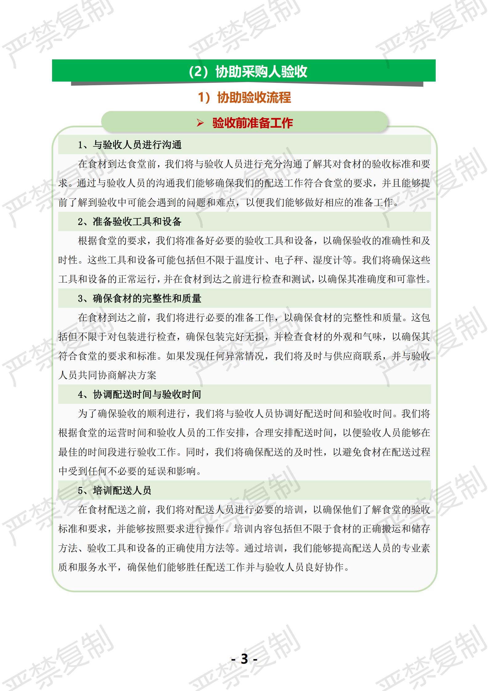 食品配送善后处理方案包括:配送完成确认、协助采购人验收、现场清理与整理、不合格食品处理、售后服务支持、质量保障与跟进、沟通反馈与提升、应急处理与预案、持续培训与提升。