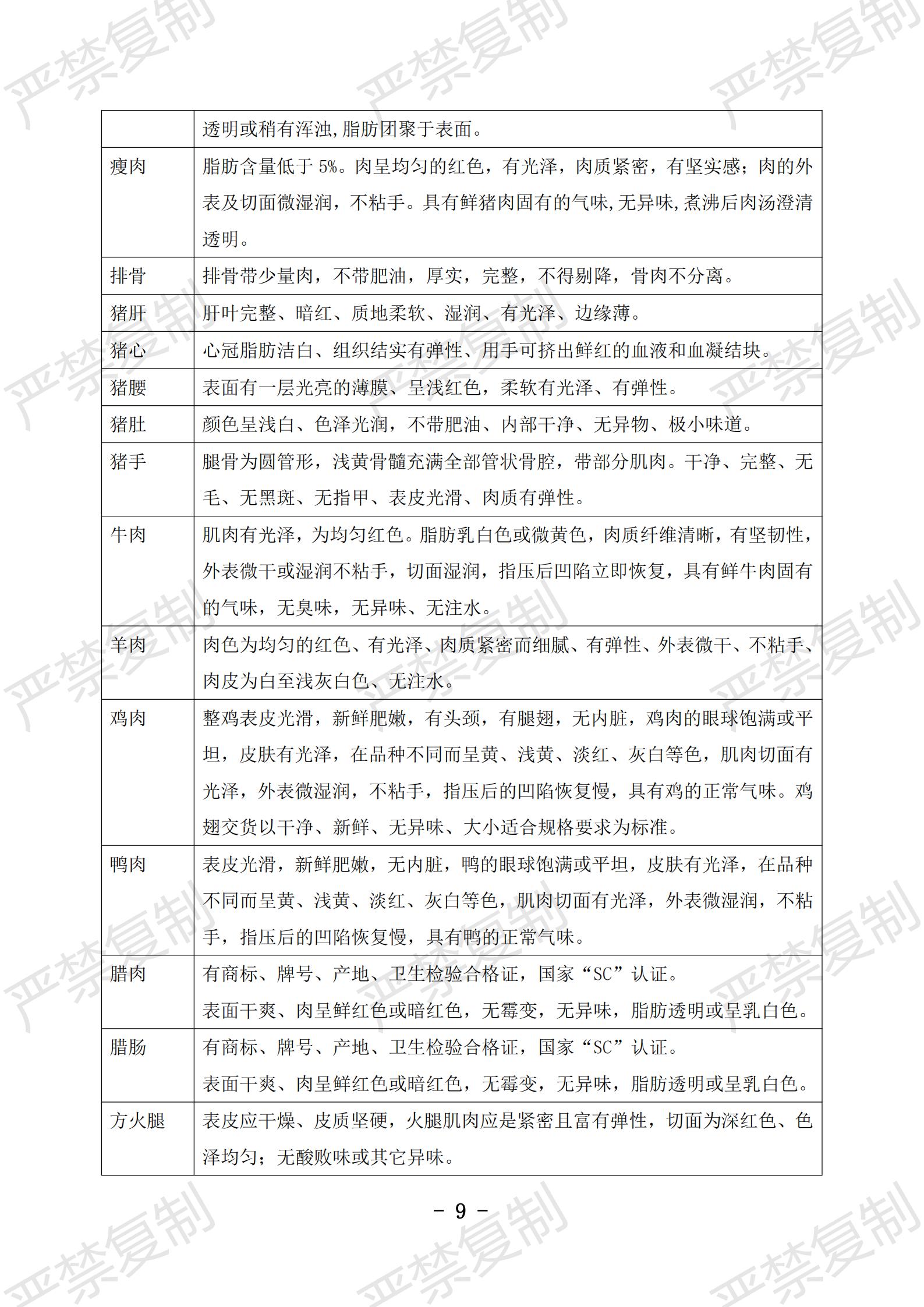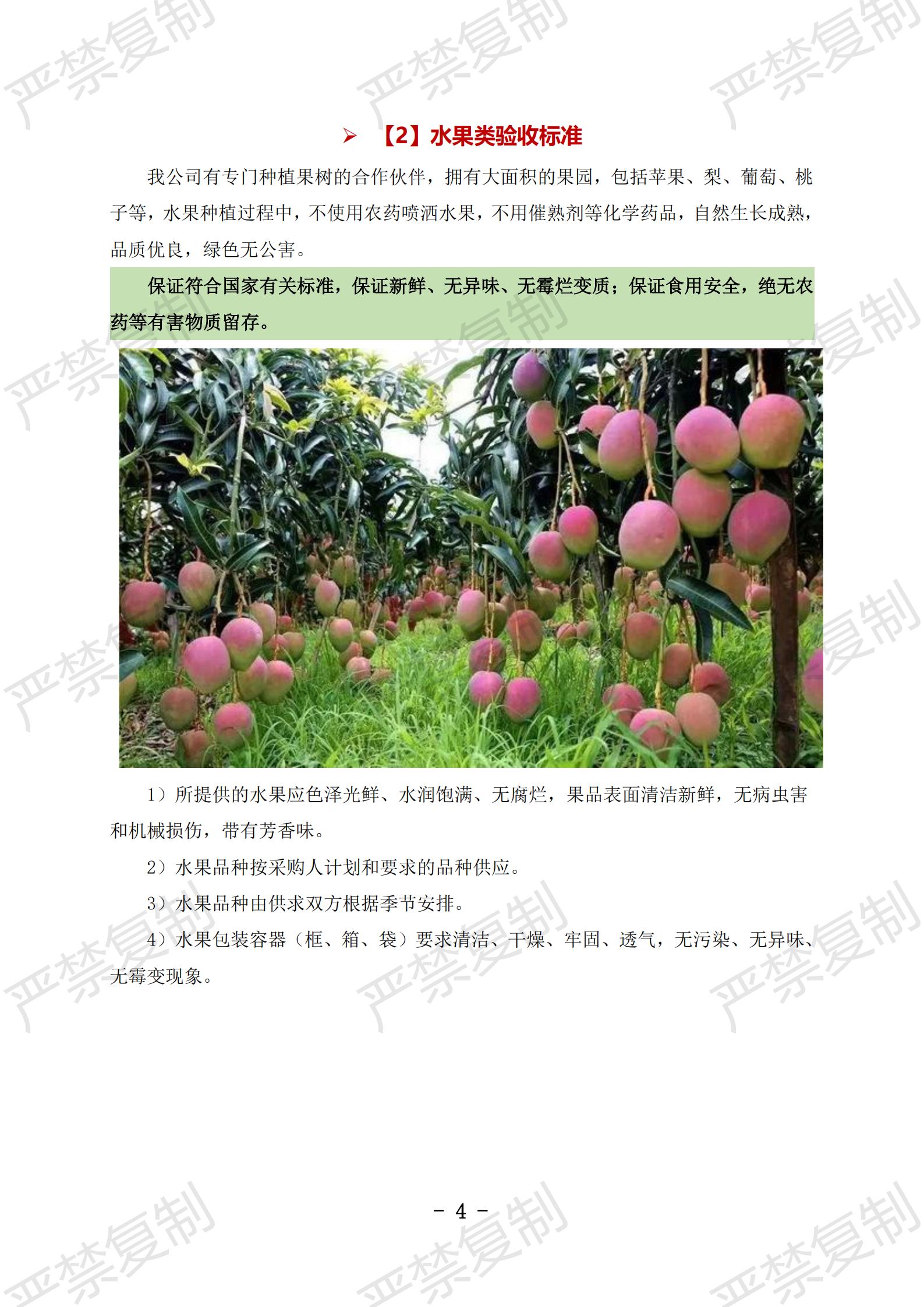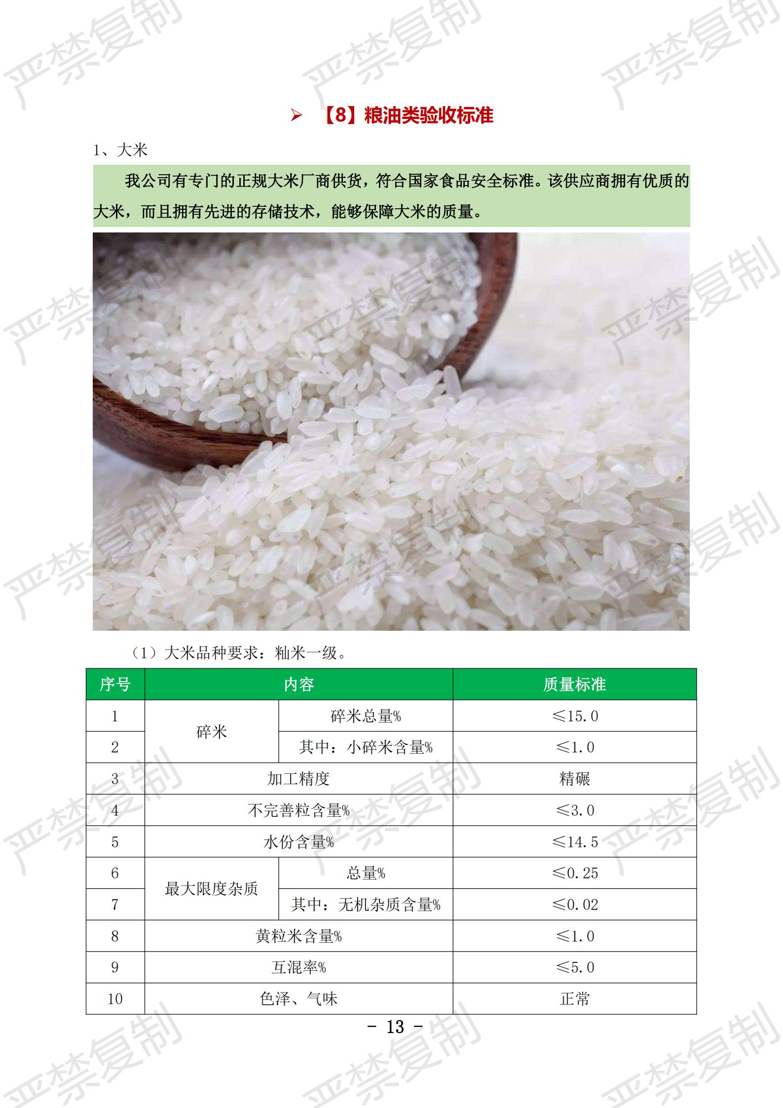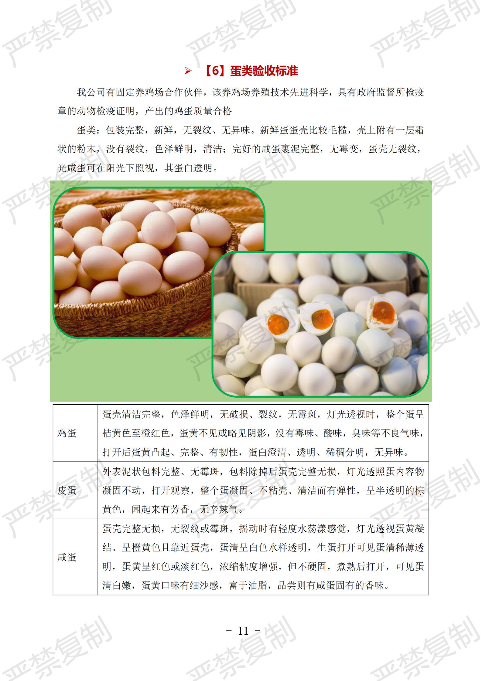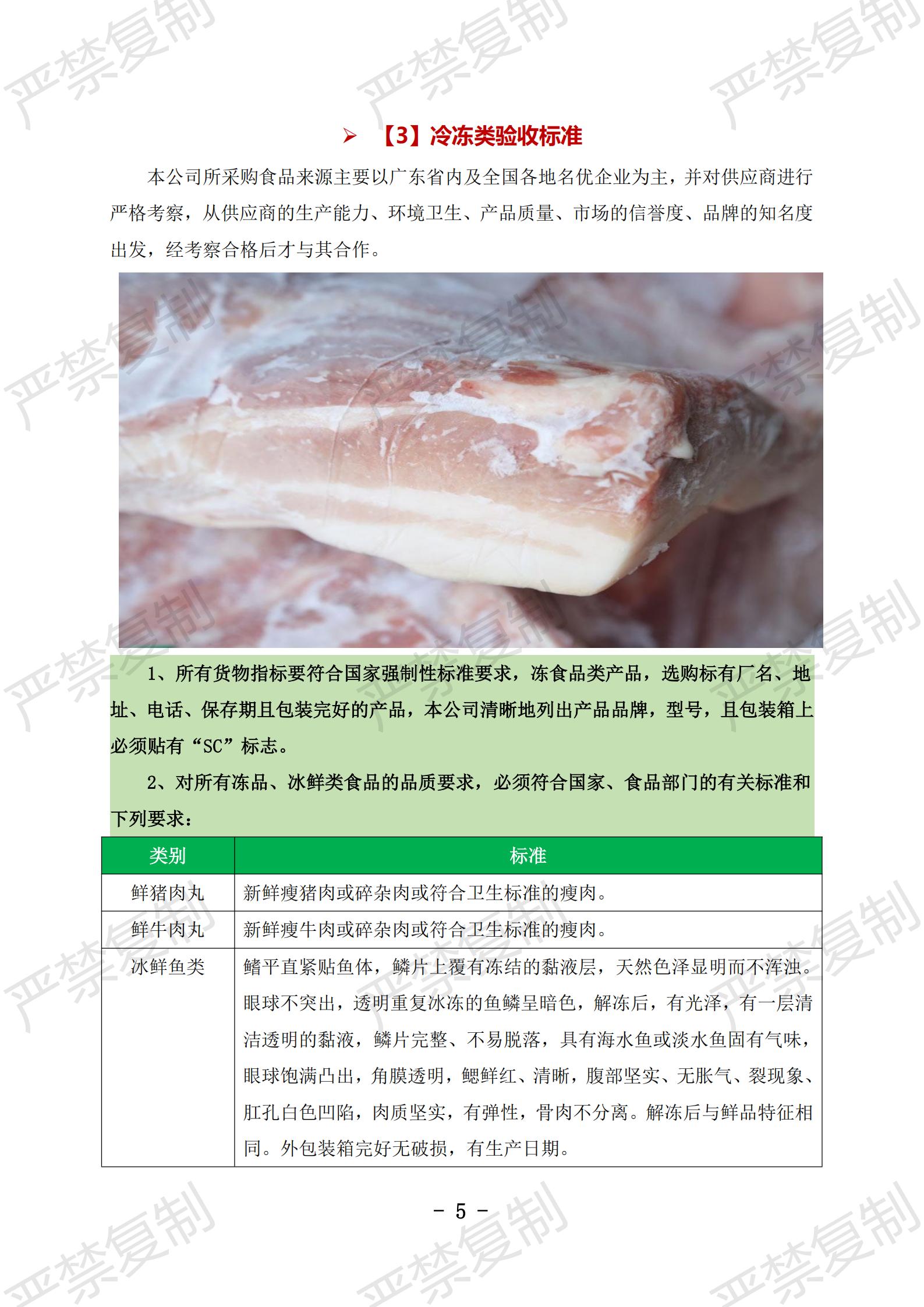 蔬果类验收标准;水果类验收标准;冷冻类验收标准;水产类验收标准;鲜肉类验收标准;蛋类验收标准;豆制品验收标准;粮油类验收标准;调料类验收标准;干货类验收标准